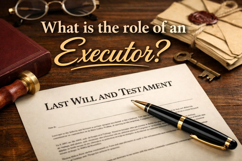 An Executor is a person who has been named in a Will and is legally responsible for dealing with the administration of the Estate of someone who has passed away. A Will can appoint more than one Executor and those named must work together to deal with the Estate. The ‘Estate’ includes everything that the deceased owned such as a property, bank accounts and personal belongings. The Executor’s role is to manage the deceased’s Estate and ensure that their assets are passed to the people entitled to inherit i.e. the beneficiaries that have been named in a Will.